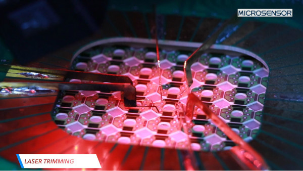 傳感器精度一方面由芯片決定,另一方面則與厚膜電路的精度相關(guān)。在制造工藝中,為提高厚膜電路的精度,需將原始厚膜電阻阻值修調(diào)至目標(biāo)阻值,對此,全自動(dòng)激光調(diào)阻可以有更精確的把控。MPM288型壓力傳感器采用單刀切割,可快速、精準(zhǔn)的將電阻精度控制在3‰以內(nèi),從而有效的提高傳感器零位準(zhǔn)確度、溫漂指標(biāo)、可靠性等,保障了MPM288優(yōu)秀的性能指標(biāo)。